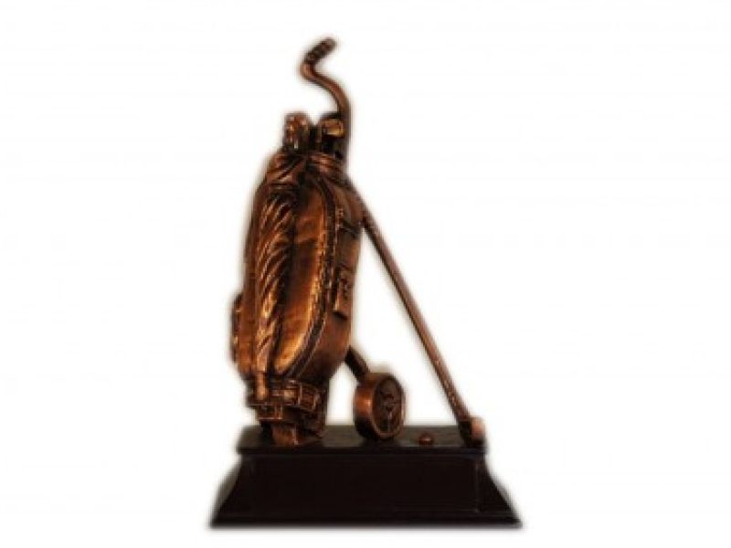 Flot og meget detaljeret trofæ med en golfbag. Udført i lækkert materiale som giver et eksklusivt look sammen med den flotte fod.