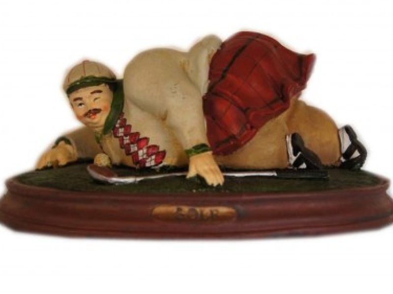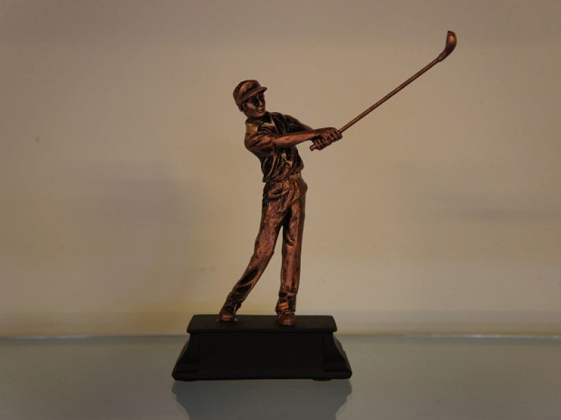 Flot og meget detaljeret trofæ med en liggende golfspiller. Udført i lækkert materiale som giver et flot udtryk og komisk design.