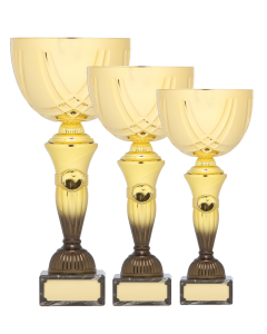 Moderne guldfarvet pokal med flot gradient overgang til sort. Mulighed for tekst og motiv